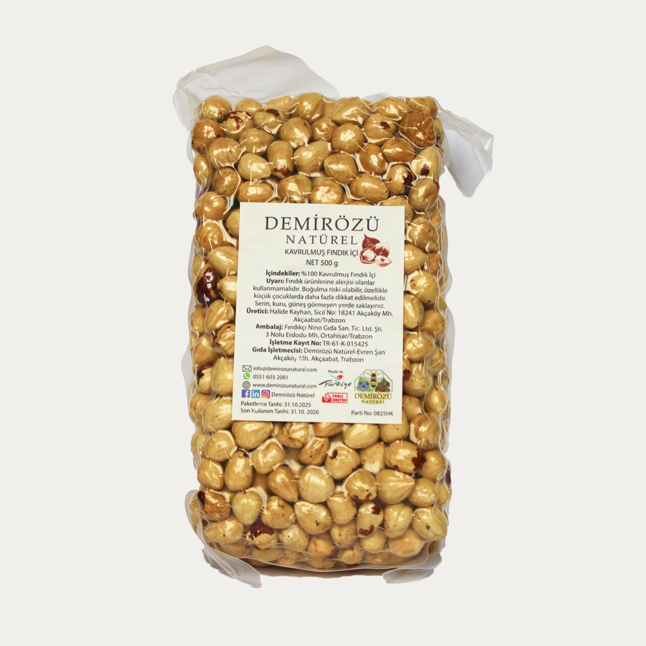 Demirözü Natürel fındıkları, Doğu Karadeniz’in temiz havası ve zengin toprak yapısında doğal yetiştirme yöntemleri ile sadece gübre kullanılarak üretilir.